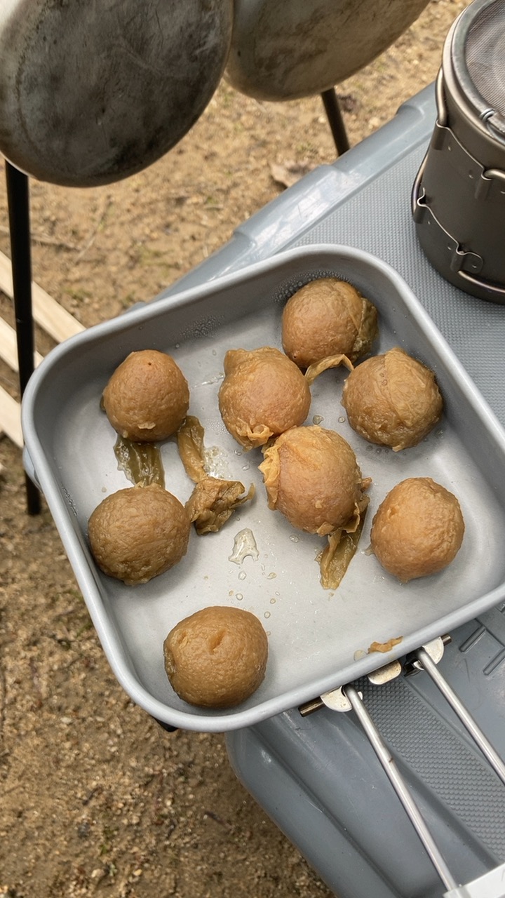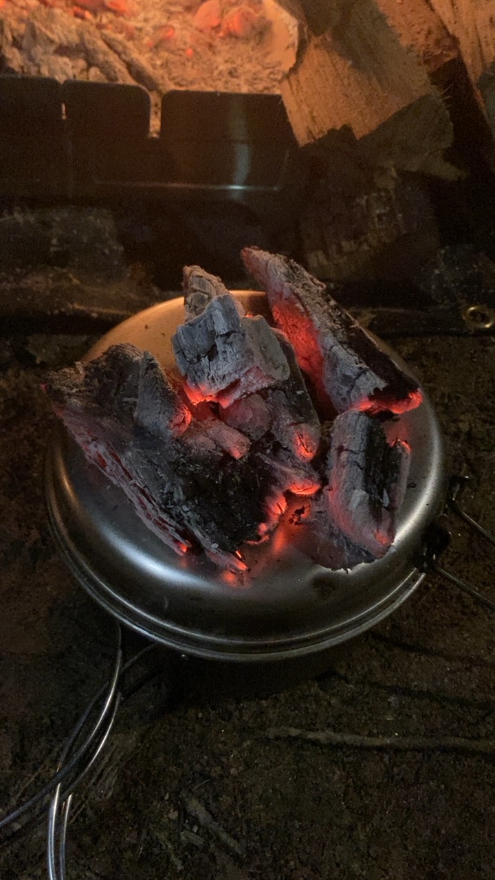 あちーあちー言いながらも熾火弄るの止まらない