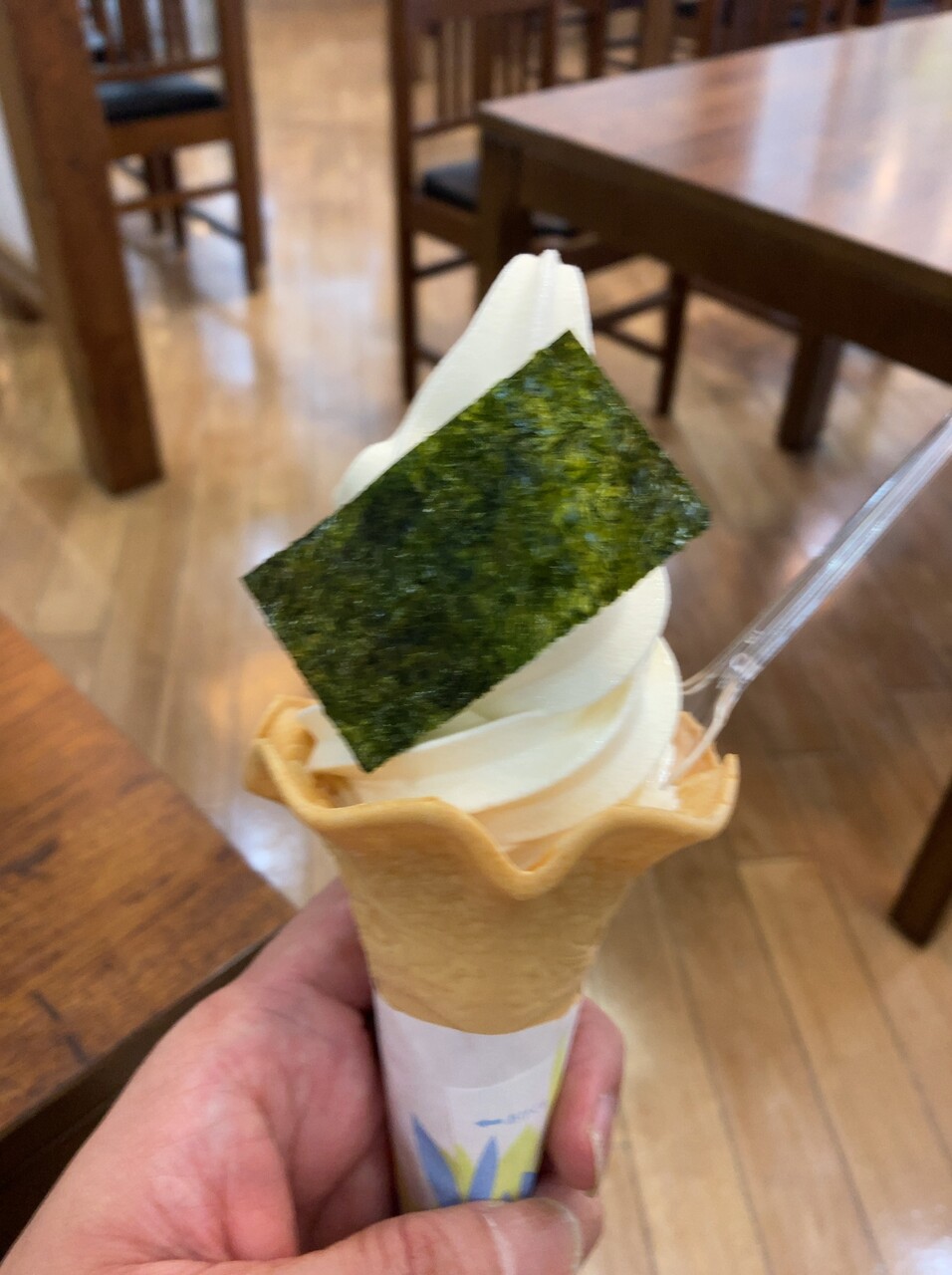 お口直しなのか、アイスを海苔巻きのように包んで一緒に食べるのか