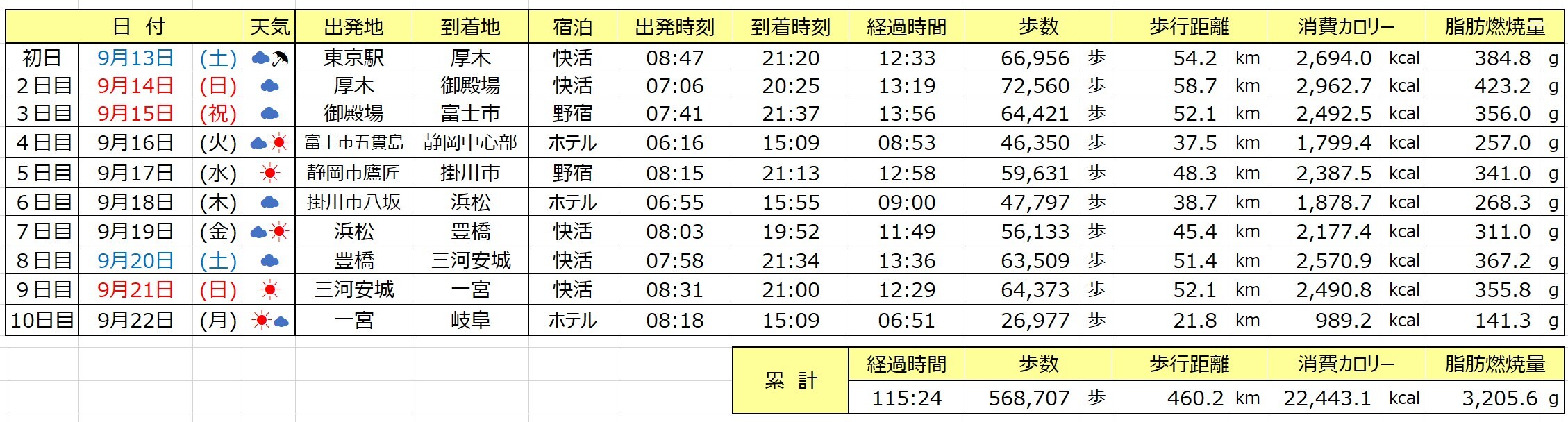 おかげさまでまずは東京~岐阜までの序盤戦なんとか無事終了や