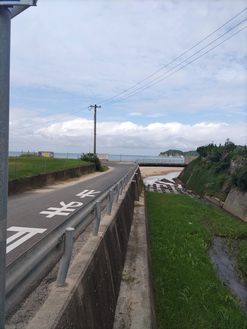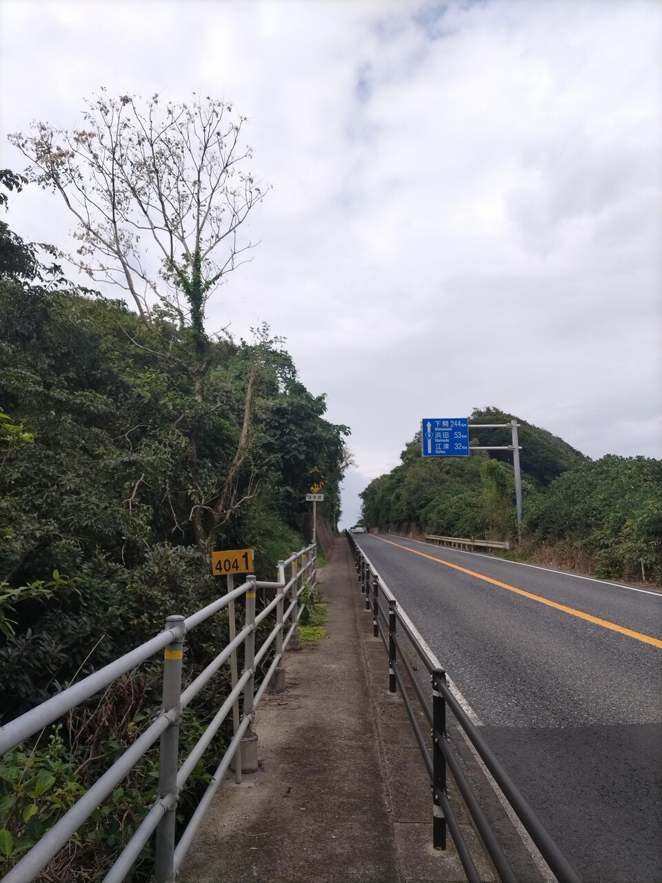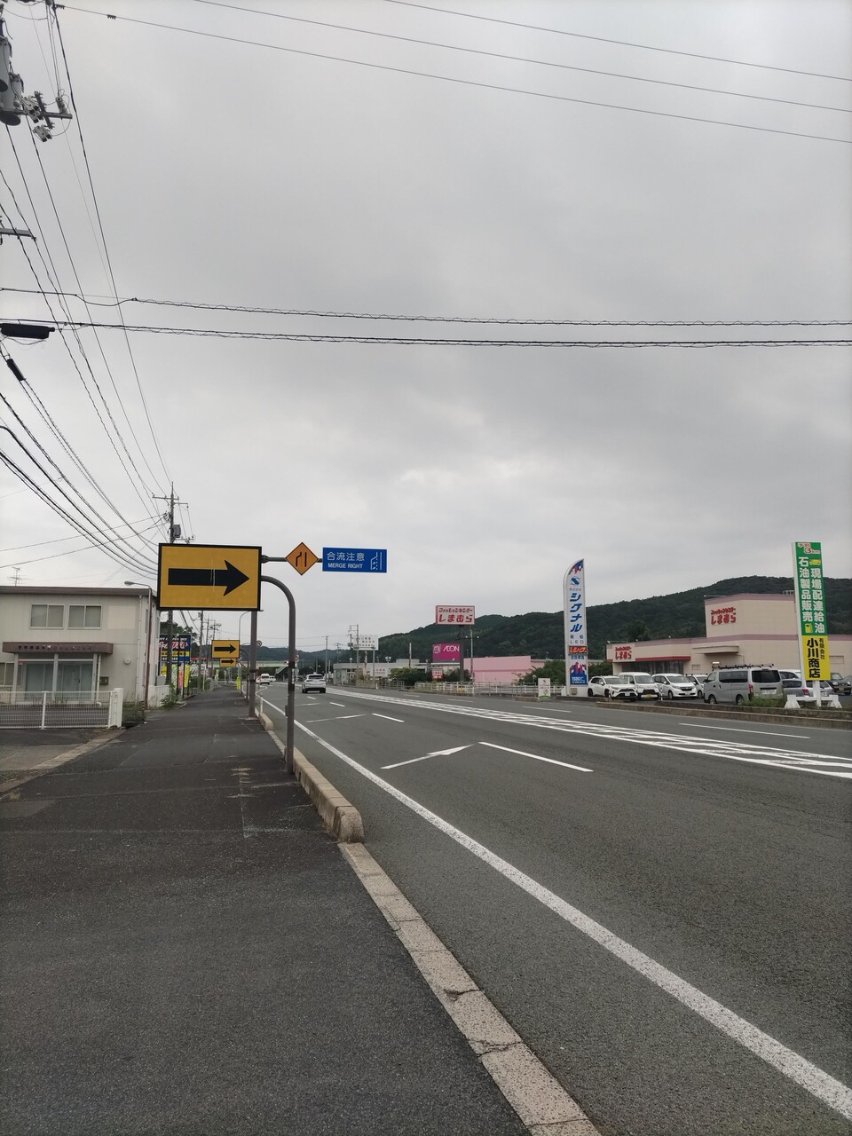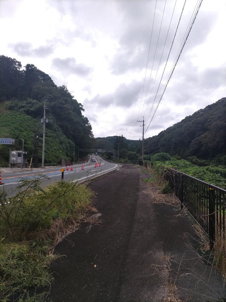 歩道もなくなっとる。ご安全に!