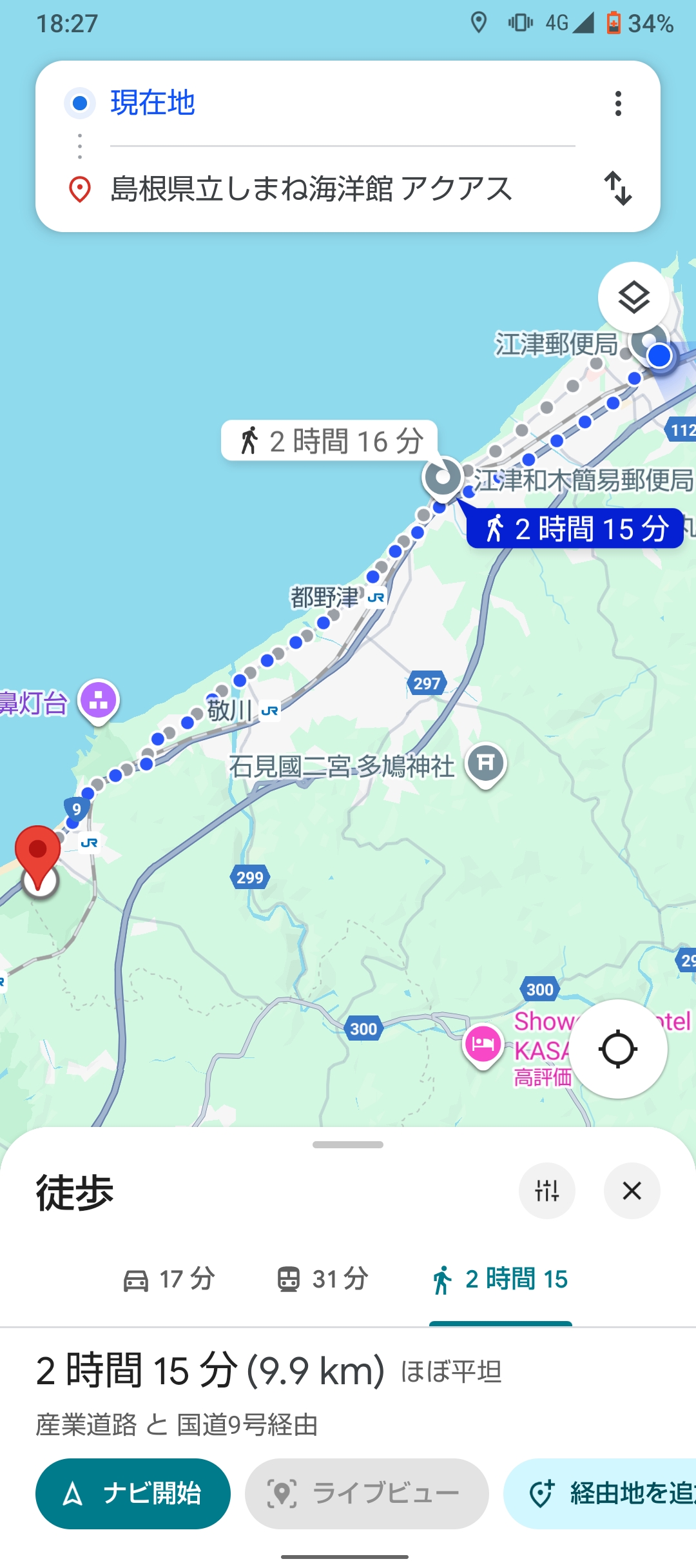 江津の遠さは交通機関の速さに因るものが大きそうやし