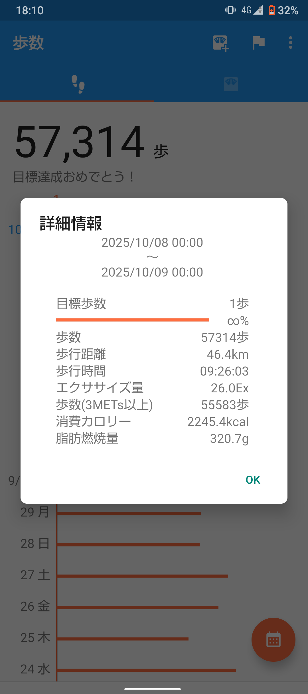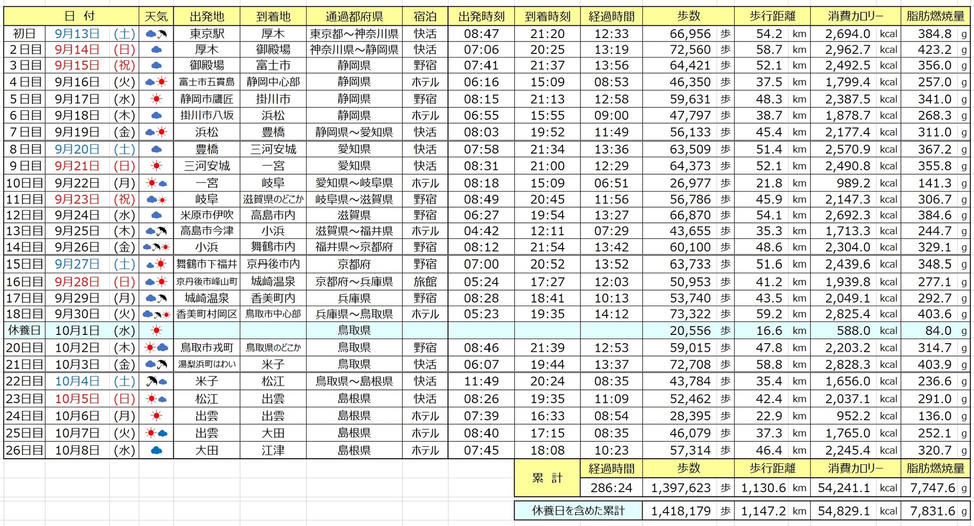 今日も46kmも歩いてたか