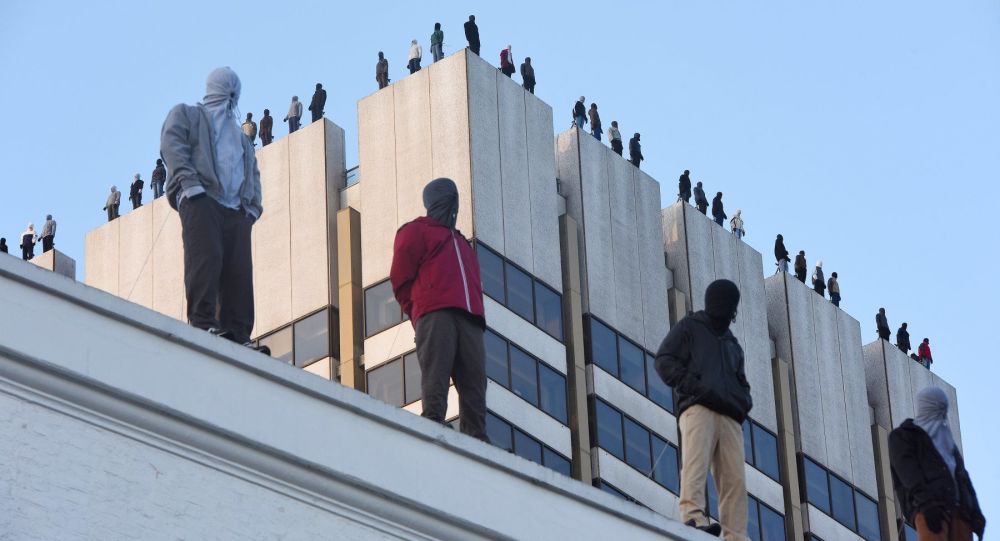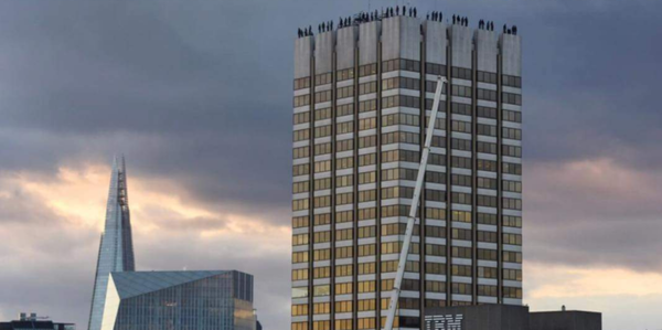 英国の大手テレビ局ITVの屋上に、建物から飛び降りようとしているかのような84体の男性の彫像が設置された。