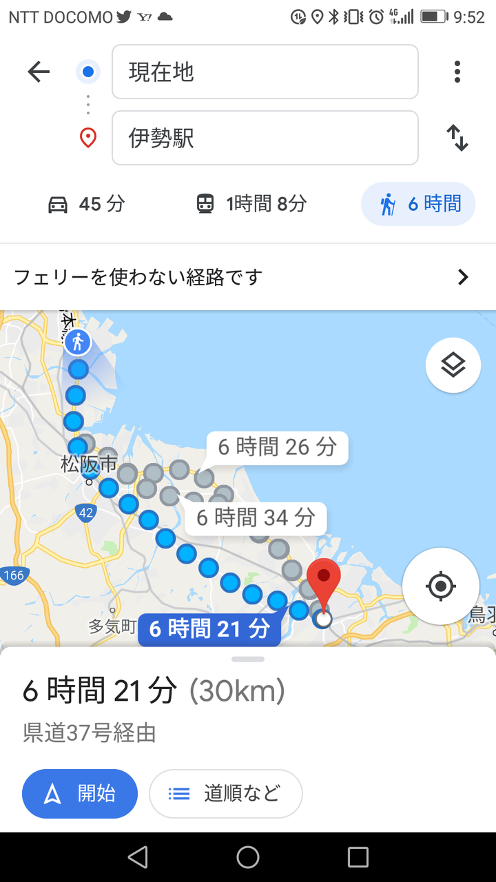 今日はまだ伊勢まで歩道ある道通るからなんとななりそうやけど明日はホンマに大変やわね